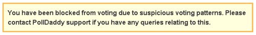 We zouden dan als een gek op refresh kunnen gaan klikken, maar na een paar 100 keer heeft polldaddy ook wel door dat er iets niet klopt en weigert dan nog nieuwe stemmen te tellen van je PC.