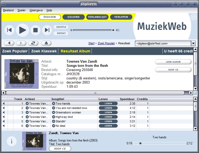 En dan komen we terug bij DigiLeen: misschien is dat wel de reden van de beperkte catalogus van de digitale muziekbib: veel van de artiesten die je op DigiLeen vindt zijn zo ehm ... obscuur dat je ze niet snel ergens anders online vindt. Zo is de muziekbib toch een invulling van een bepaalde niche, wat eigenlijk ook wel een taak is van de openbare diensten.