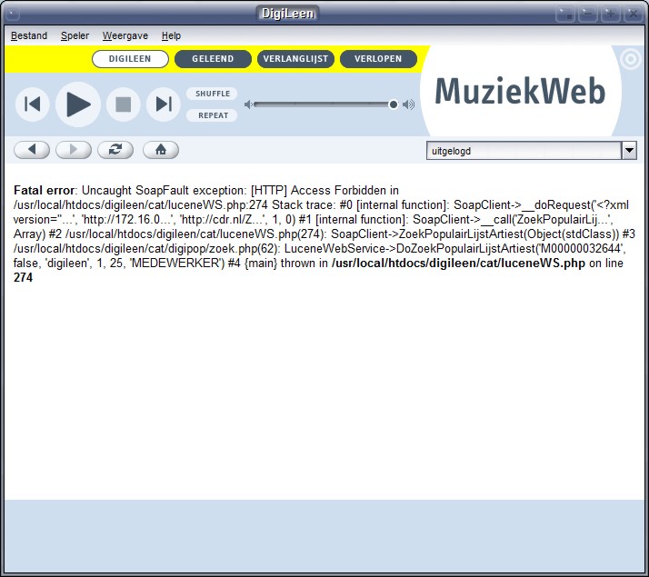 - als je in de playlist zit, kun je de bibbliotheek niet doorzoeken: je moet dan eerst op "digileen" klikken, dan een keuze maken tussen klassiek of populair en dan kun je zoeken.