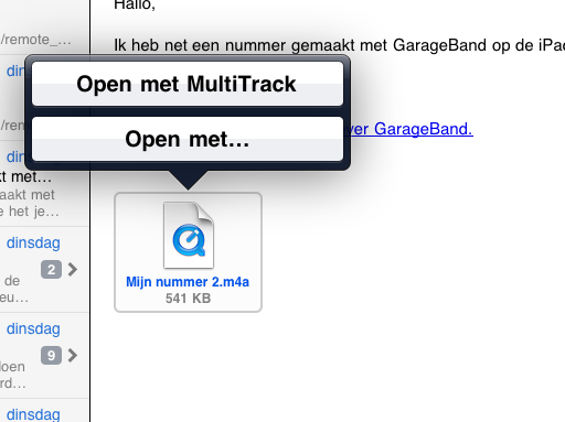 Luckily multitrack DAW can import samples from email attachments. ![]()