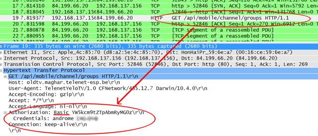 Je ziet hier dat de App eerst http://oldtv.maghar.telenet-esp.be/ gaat opzoeken en daar naar http://oldtv.maghar.telenet-esp.be/api/mobile/channel/groups gaat kijken.