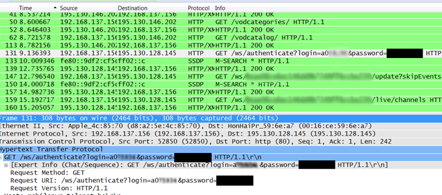 en verstuurd mijn login en wachtwoord niet eens als "basic authentication" maar gewoon hopla in de URL ...