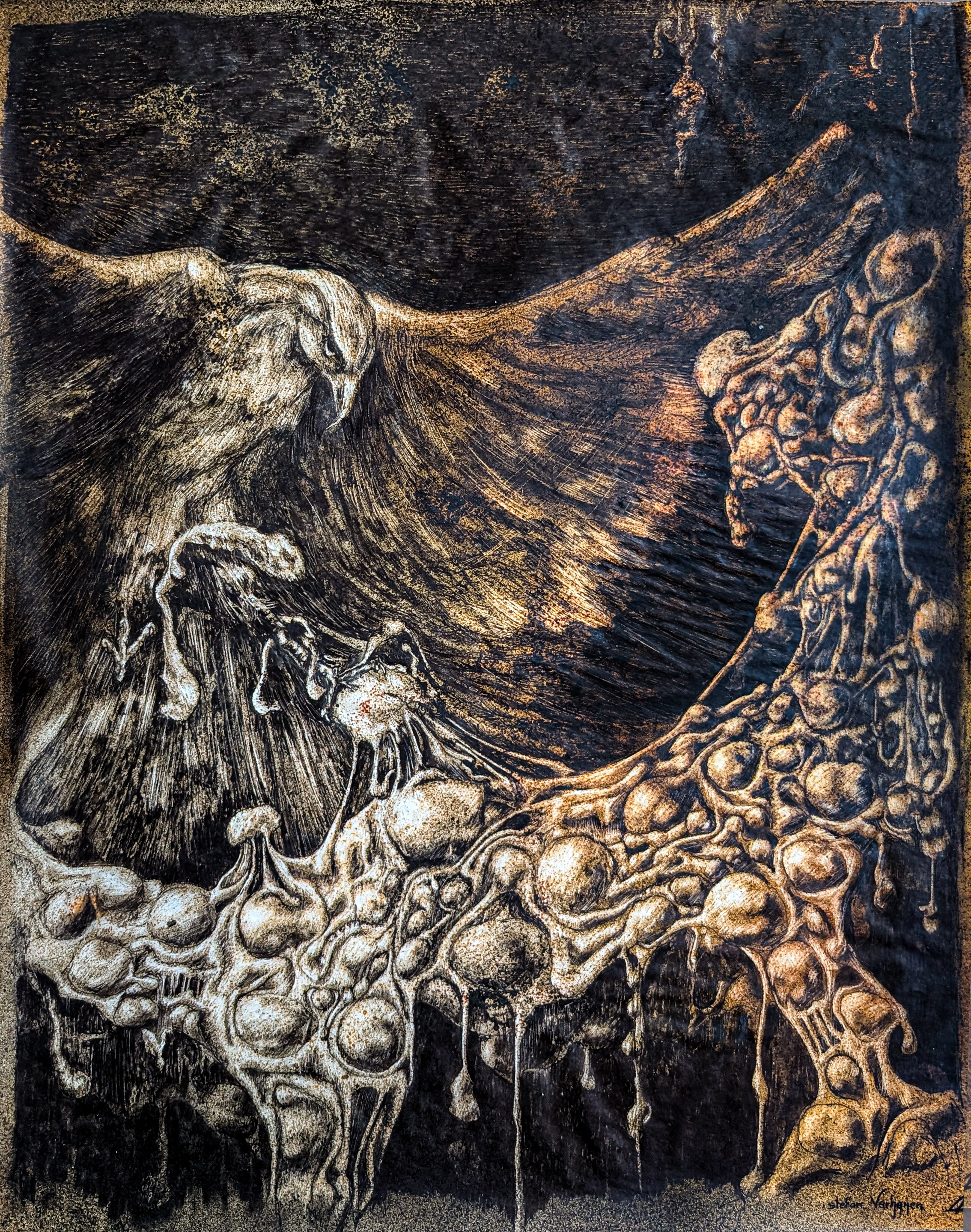 The ones that stuck with me are pencil on paper, drypoint etching and soft pastels chalk,